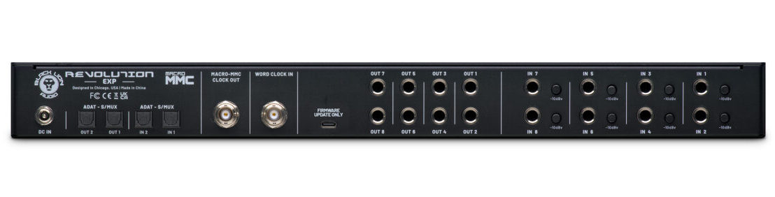 Expand your studio connectivity by adding more inputs and outputs to your ADAT-compatible interface with the Revolution EXP! You get 16 analog TRS connections (8-in, 8-out), as well as 16 channels of ADAT I/O. Boutique component selection and proprietary Macro MMC clocking ensure that the Revolution EXP makes every device you connect sound its absolute best.