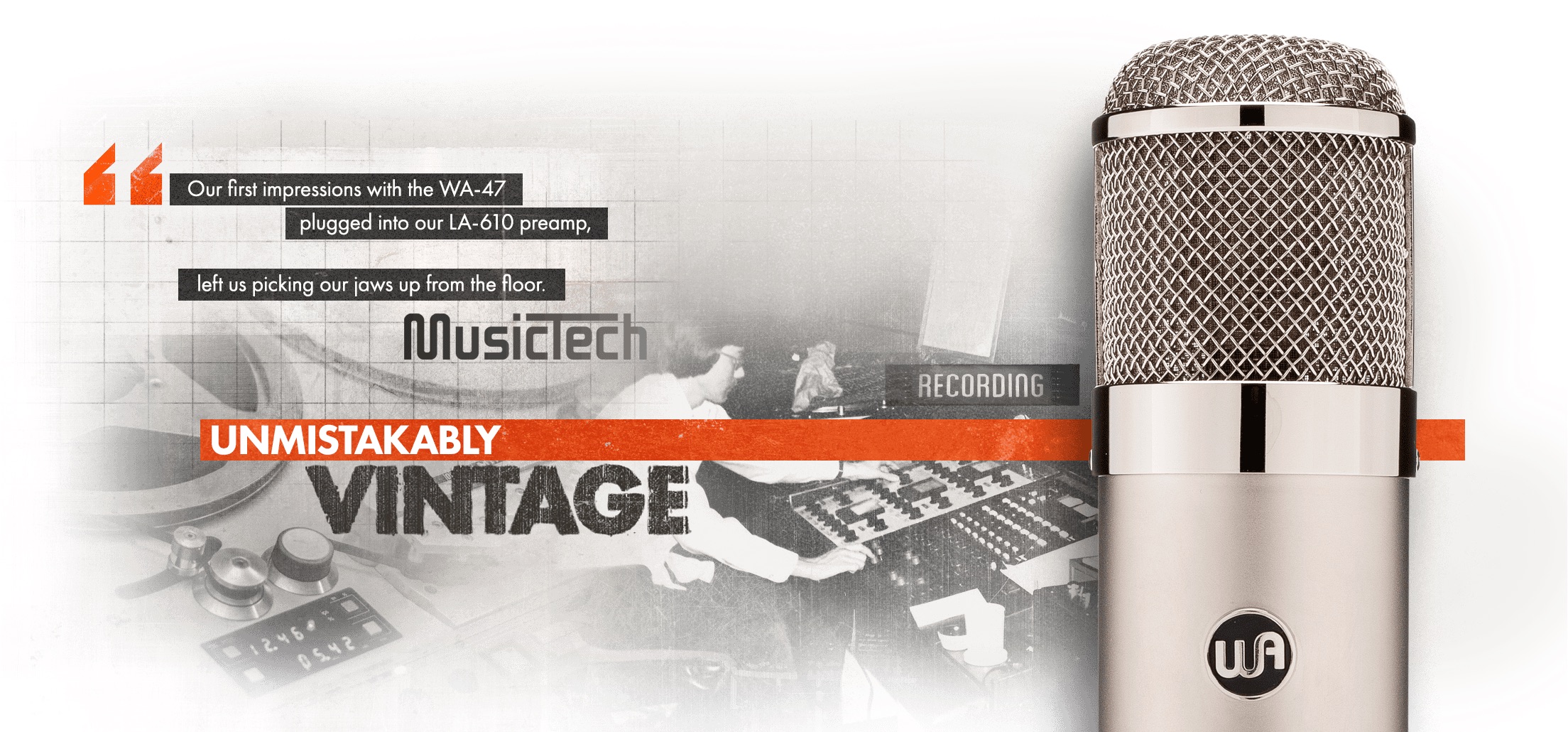 • The WA-47 uses a true reproduction of the K47-style capsule in the original 47 tube mic. Perfect for recordings where vintage vibe is a must.