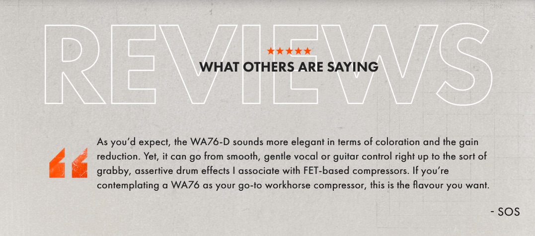 - Building off of the lauded fame of vintage Rev D-style compressors, the WA76-D/D2 includes all the controls of the original plus critical added features that deliver a complete and professional recording experience.