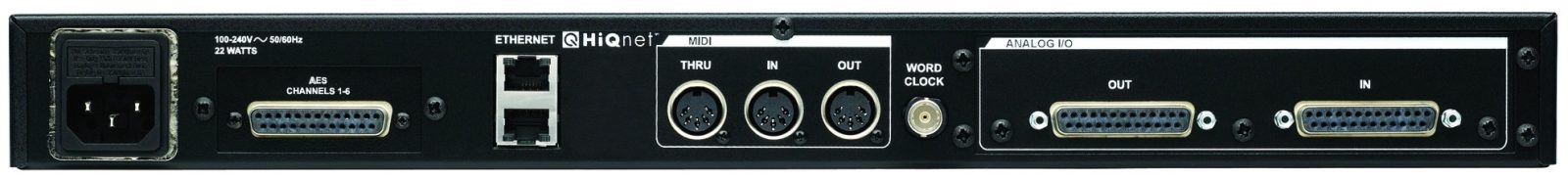 The PCM96 Surround is available with either 6 XLR Stereo AES inputs and outputs (Surround-D), or 2 DB25 6-channel analog I/O and 1 DB25 6-channel digital I/O (Surround-A). Both versions also feature MIDI, and Wordclock.