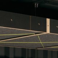 Ophangsysteem met in hoogte verstelbare kabels, vermindert plafondreflecties en nagalm, sluit naadloos aan op SBX core en SBX sub